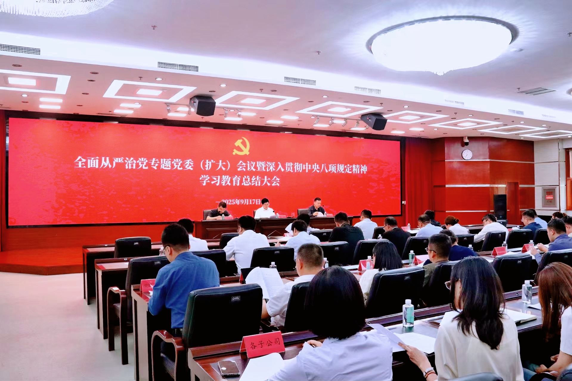 9月17日,盛京金控集团召开全面从严治党专题党委(扩大)会议暨深入贯彻中央八项规定精神学习教育总结会议,传达学习习近平总书记重要指示精神和中央党的建设工作领导小组会议精神,以及省委、市委有关部署要求,全面总结集团学习教育成效和经验,研究部署巩固拓展学习教育成果。集团党委书记、董事长徐东主持会议并讲话,市委金融工委相关人员到会指导。集团领导班子成员、子公司主要负责人、党组织书记、党务工作者,以及总部全体员工参加。
